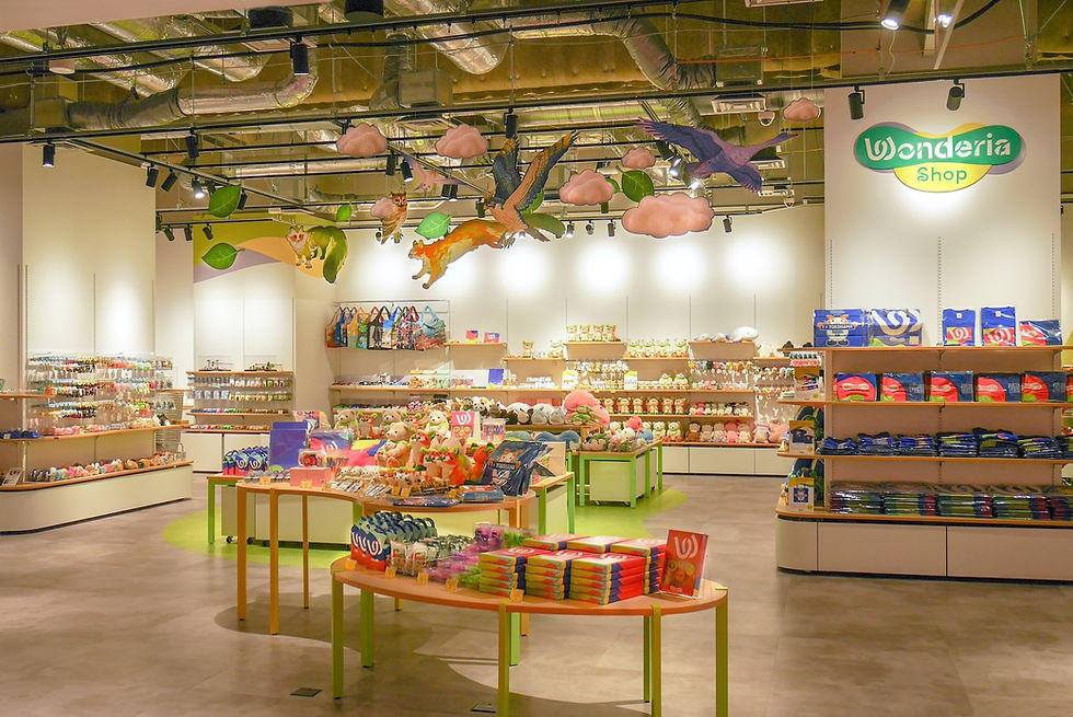 明るく広々としたショップは、映像体験の余韻を感じながらゆったりとした気分でお買い物を楽しんでいただけます。「ワンダリア横浜」の世界観を持ち帰るとともに、「誰かに話したい」「誰かとまた来たい」と思える特別な場所になるよう、話題性と写真映えを兼ね備えた商品をご用意しています。